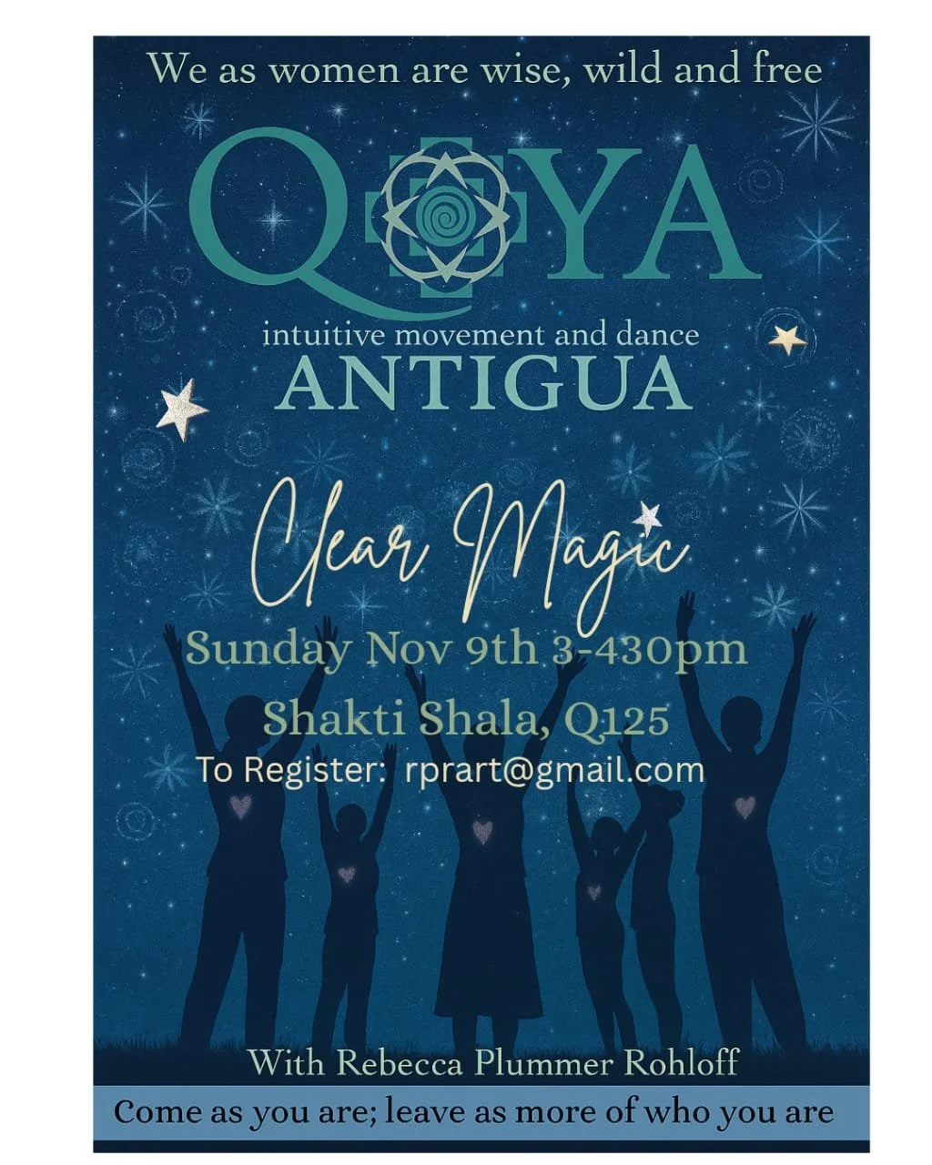 Join us in our women’s movement circle on 4 Kame, an auspicious day on the Maya calendar for clearing negativities and stepping into the destined possibility. Through the wisdom of cause and effect, we become the cause, planting the seeds in our bodies for the beneficent, future of all beings. Contact rprart@gmail.com for registration details. Space limited to 15. See more about Qoya here..